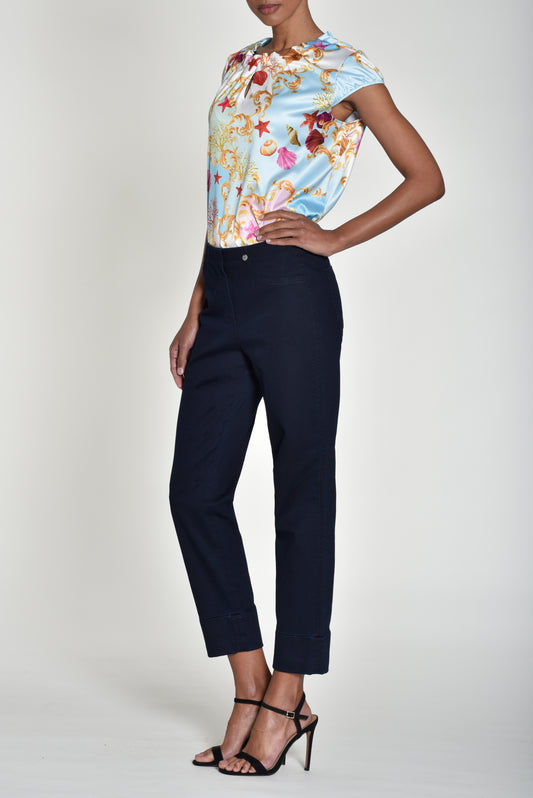 Robell Bella 09 Navy Denim Turn Up Crop